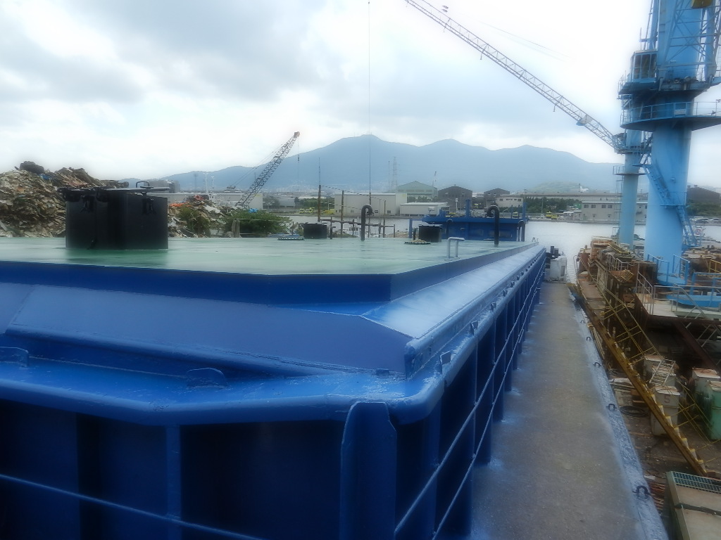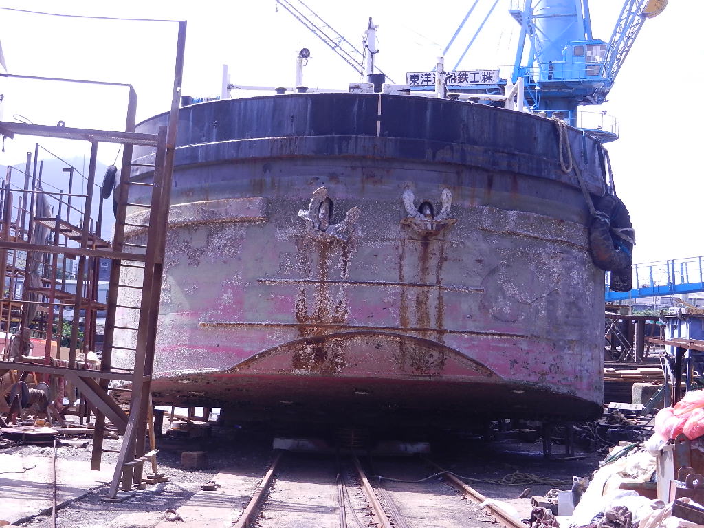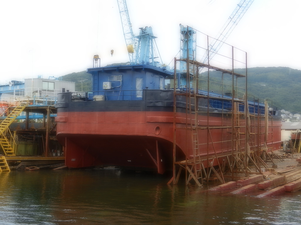 東洋造船鉄工梶@様の船台に上がったバージ船
