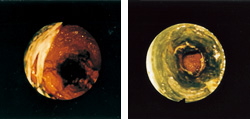 赤水とは水中に溶けている酸素などにより鉄が酸化し、赤サビが発生し、そのサビが水を赤く染めて出てくる現象です。 エルセを取り付けると、配管内の赤サビを取り除き、赤サビが積み重なることによって促進されていたサビが抑 えられ、赤水問題が解消します。 (写真左/設置前 写真右/設置後) |